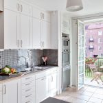 Para clássico cozinha branca você pode usar azulejos com enfeites interessantes, o que tornará o interior mais moderno