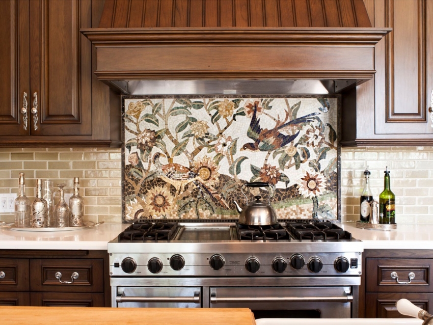 Mosaico feito à mão é um trabalho caro e meticuloso que pode trazer extravagância e exclusividade para o interior de uma cozinha clássica