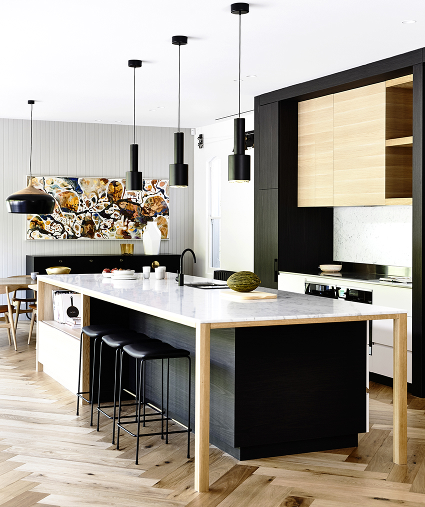 Outro ponto importante a se considerar é o fato de a tonalidade preta se sujar mais facilmente, pois as impressões digitais permanecem nas superfícies brilhantes, as manchas e a sujeira ficam mais visíveis. Portanto, estudando as fotos de fachadas de cozinhas em preto e branco, é possível perceber que as superfícies brilhantes são menos utilizadas, sendo dada preferência às opções texturizadas do tipo madeira, que não se sujam tão rapidamente. Outras dicas úteis para decorar uma cozinha de dois tons: