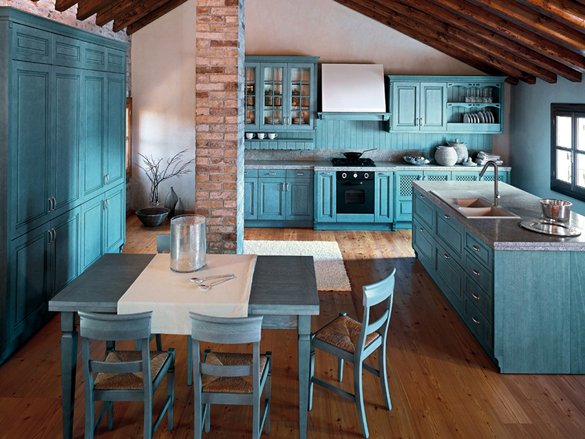 - Provence. São usadas fachadas cinza-azuladas, que são combinadas com papel de parede pastel. Uma característica distintiva é o uso de superfícies ligeiramente desbotadas.