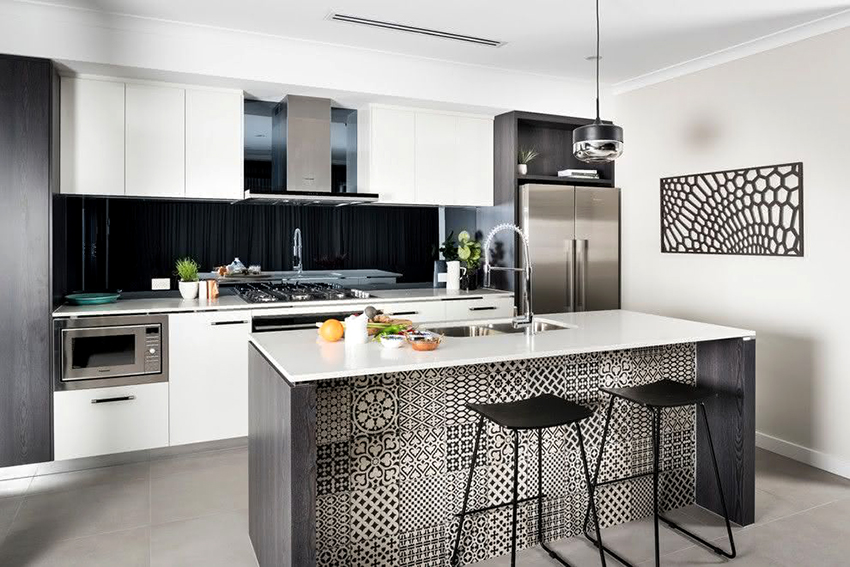 Conselho util! A melhor maneira de projetar cozinha preto e branco é considerada opção quando as paredes e teto são em cores claras e o piso em cores escuras. É melhor deixar a fachada superior clara e a inferior pode ser deixada em preto. A bancada pode ser leve e o avental de cozinha pode ser preto e branco.