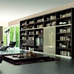 Alguém gostará da variação brutal do produto para uma sala em estilo loft. Nesse caso, o livro "monstro" literalmente "cresce" nas tábuas com sua massa negra, brilhando sombriamente com o vidro das portas, atrás das quais os livros estão protegidos.