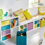 - Esquema de cores. Para o quarto das crianças, a melhor solução serão peças de mobiliário com elementos luminosos. Graças a isso, você pode não só adicionar cor ao ambiente, mas também organizar o sistema de armazenamento corretamente. Por exemplo, as estantes de livros podem ser pintadas em uma cor e as de brinquedos em outra.