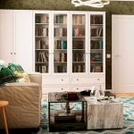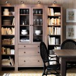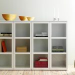 Talvez a principal característica do fabricante sueco seja que ele torna possível projetar uma sala em um único design estilístico.Por exemplo, os armários de vidro Ikea podem ser produzidos como um dos elementos do fone de ouvido. Ao mesmo tempo, se necessário, será possível adquirir facilmente um meio-fio, uma mesa ou estantes para livros, caracterizados por um desempenho estilístico semelhante.