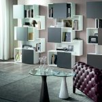 Uma estante branca com portas de vidro trará luz extra ao ambiente e se tornará um destaque criativo do design. Falando sobre a textura dos móveis, deve-se notar que os modelos brilhantes irão adicionar solenidade ao interior, e os produtos foscos irão complementar perfeitamente qualquer design.