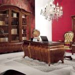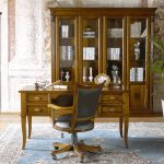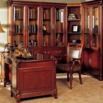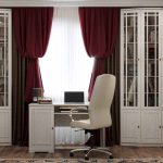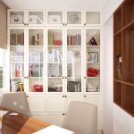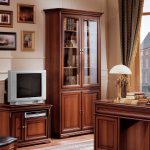 Quanto ao espaço de escritório, neste caso, o mobiliário de alta tecnologia, que se caracteriza pelo laconicismo e eficiência, é perfeito. Um estojo esmaltado se encaixa organicamente em tal interior, no qual você pode organizar livros e pastas de forma conveniente com documentos importantes necessários para o trabalho.