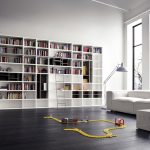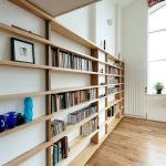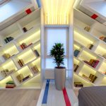 Caso os cômodos não possuam área que permita a instalação de móveis para guarda de acervo literário, pode-se utilizar o corredor ou corredor. Ao mesmo tempo, a iluminação adicional não interfere em nenhum sistema linear.