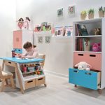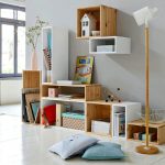 - Para uma criança com menos de 1 ano de idade. Nesse período, ele ainda tem poucos brinquedos, mas em vez deles há muitos produtos de higiene e roupas. Uma pequena prateleira é suficiente para todos os brinquedos.