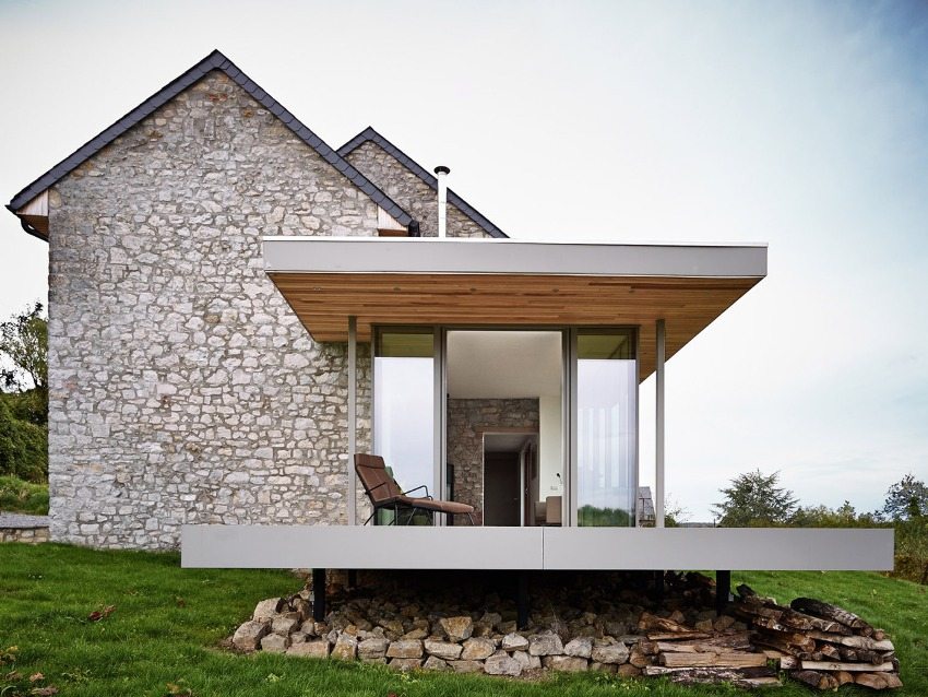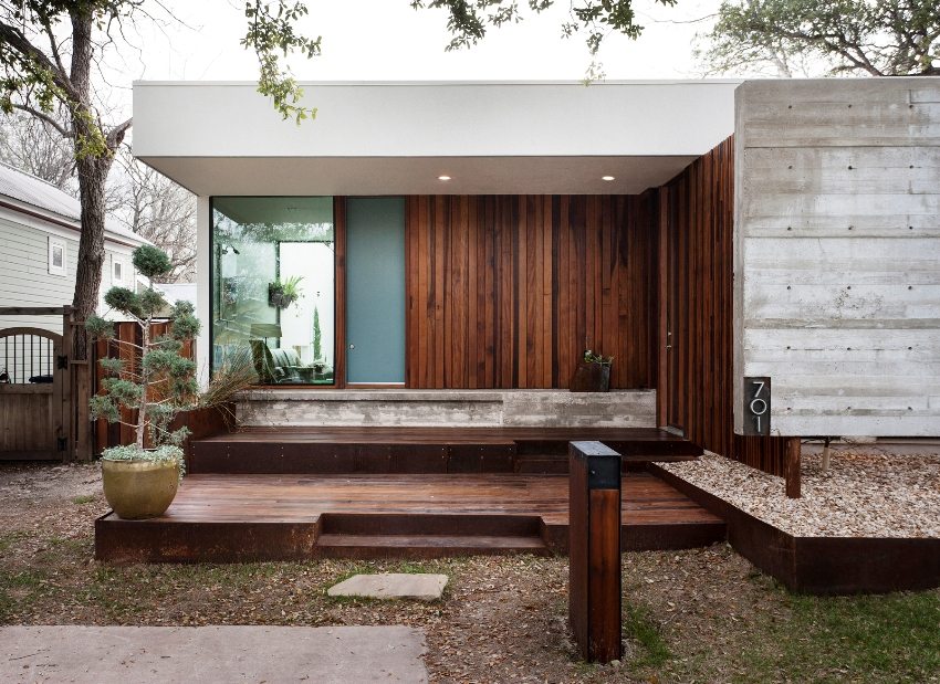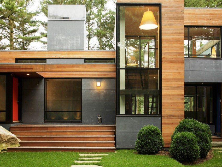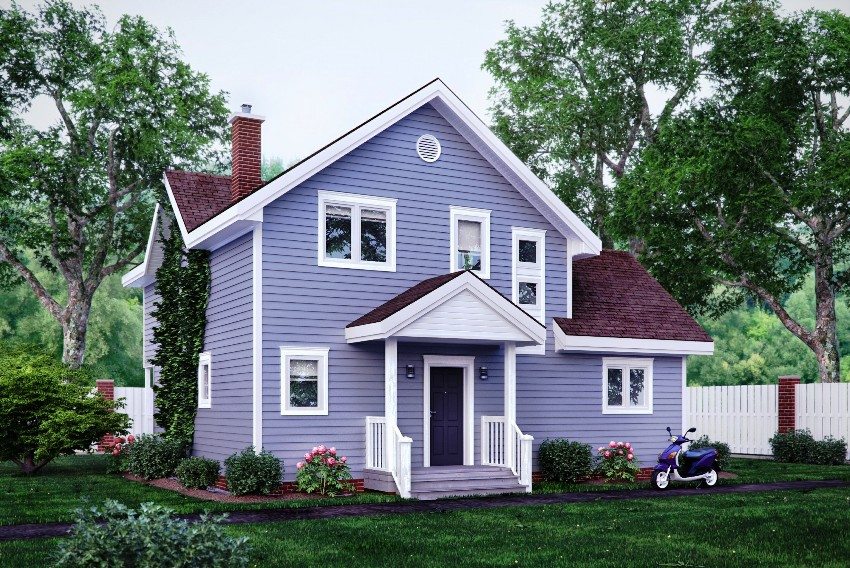Utilizarea lemnului natural acoperit vopsea de fațadă în decorarea pereților exteriori ai casei