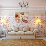 Opțiuni interesante pentru combinarea tapetului pentru camera de zi: fotografia sălii în stil Art Nouveau