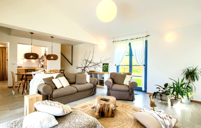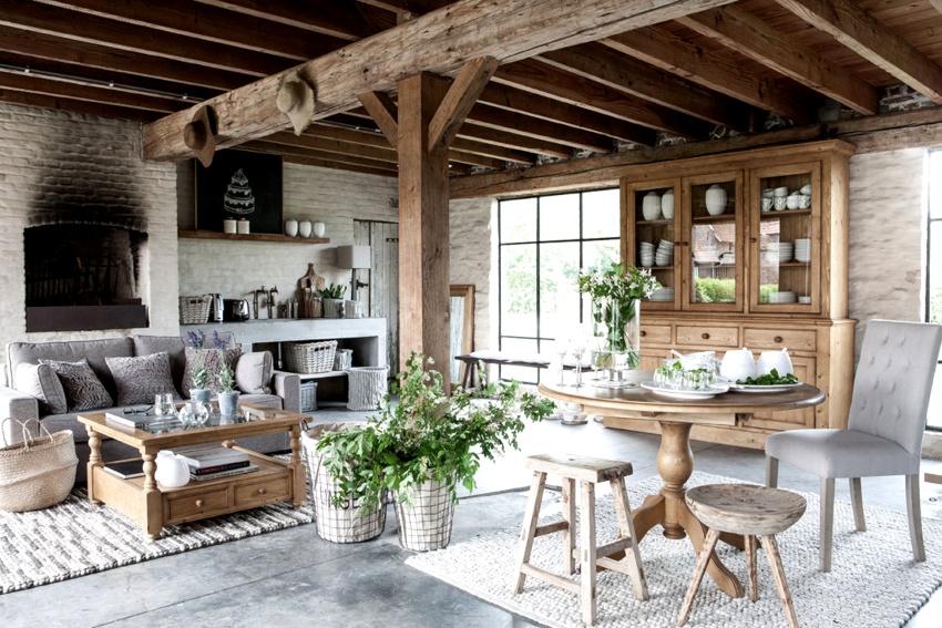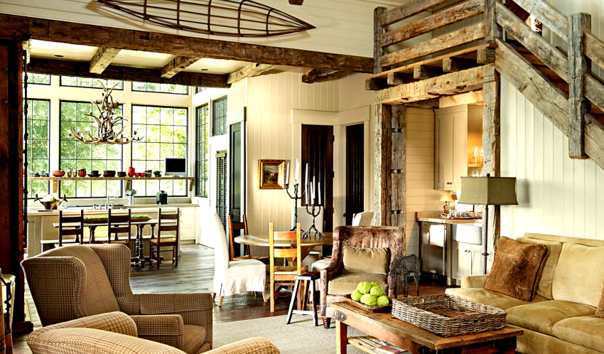 Caracteristicile designului rustic al camerei de zi din casă