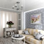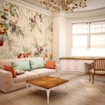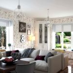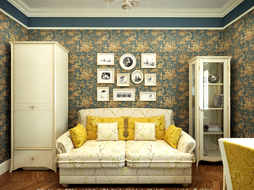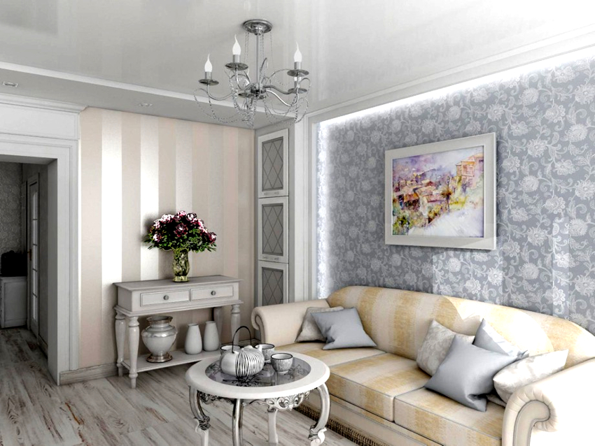Pentru camerele de zi cu tavan scăzut, cea mai potrivită soluție ar fi o combinație verticală cu benzi alternante de tapet cu diferite motive, dar realizate în aceeași paletă de culori.