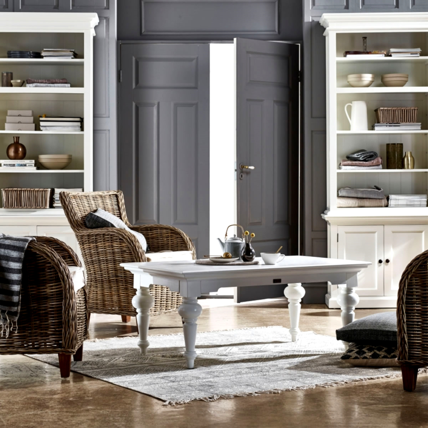 Elementele de mobilier pentru un living în stil Provence ar trebui să aibă un aspect elegant și grațios, lipsit de decorativitate. Caracteristica stilului satului este suprafața aspră, uzată (cu efect de îmbătrânire), care îi conferă un luciu deosebit. Toate mobilierele trebuie să fie din lemn natural și decorate cu sculpturi și monograme. Este permisă utilizarea elementelor forjate. Diferite opțiuni de amenajare pot fi văzute pe fotografii reale ale interioarelor camerelor de zi din apartament.