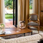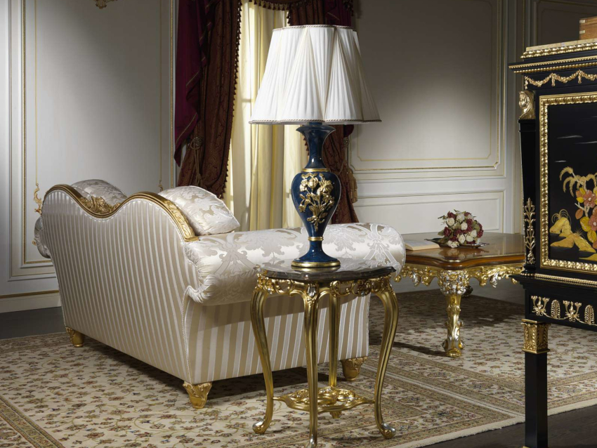 Într-un living clasic, o canapea de lux și o măsuță de cafea cu picioare curbate vor arăta potrivite