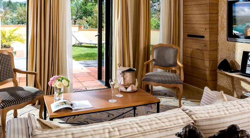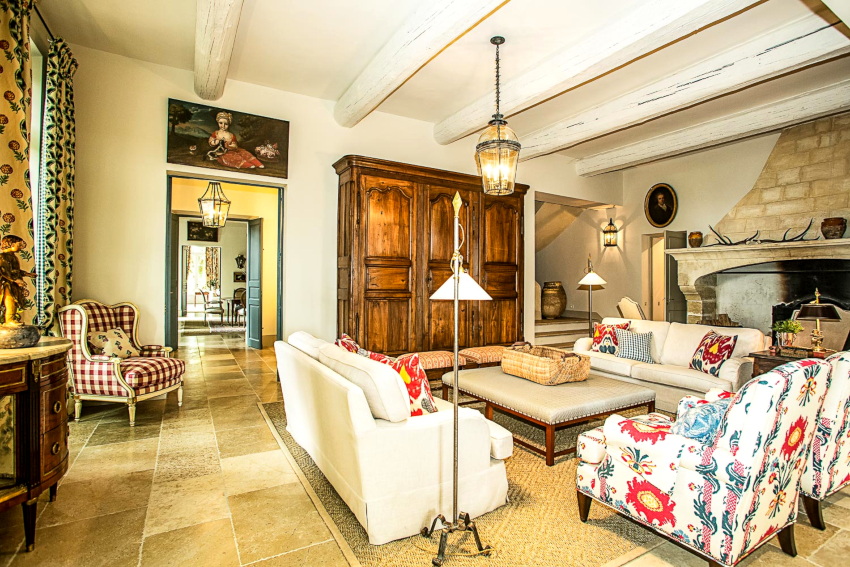 Sala în stil Provence este caracterizată prin utilizarea unei cantități mari de textile naturale sub formă de fețe de masă din dantelă, huse de mobilier din in, perdele din organza sau șifon cu baldachin și perne cu modele florale.