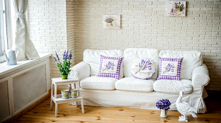 Sfat util! Un plus caracteristic la designul unei camere de zi în stil Provence va fi compozițiile de lavandă sub formă vie sau uscată.
