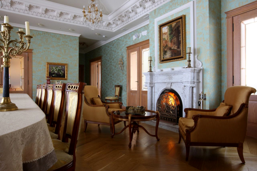 Într-un interior clasic, este permisă așezarea unui laminat pe podea care imită speciile de lemn nobil