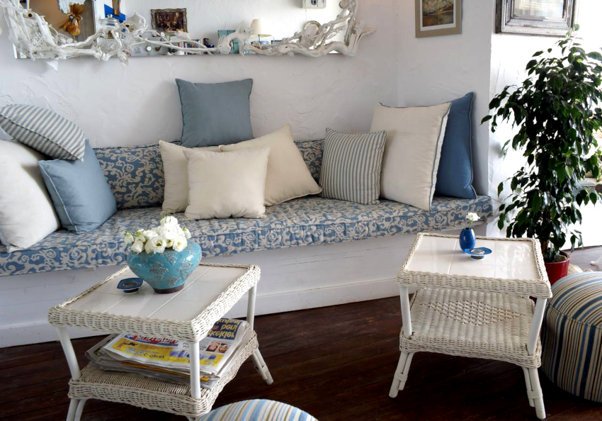 Camera este decorată în culori deschise cu ajutorul unor nuanțe naturale naturale, care ar trebui să fie reținute și dezactivate. Se utilizează predominant alb, lăptos, lavandă, măslin, turcoaz și albastru deschis. Se preferă nuanțele calde de teracotă, muștar, galbene, care par să fi ars la soare, ceea ce este clar arătat în fotografia designului camerei de zi într-o casă privată.