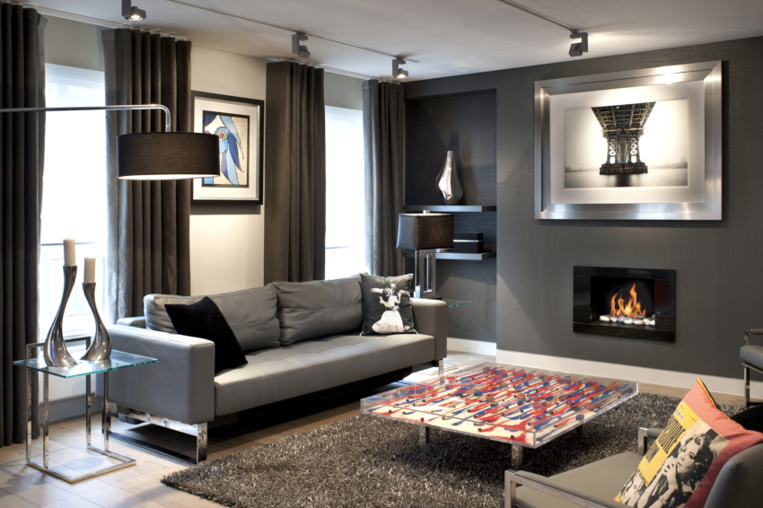 Modernul este asemănător stilului clasic, dar interiorul este lipsit de rigoare și claritate a liniilor, precum și de volumul de mobilier. Dinamismul său caracteristic este creat cu ajutorul texturii și culorii materialelor de finisare, care pot fi văzute în fotografie. Fotografiile reale ale designului camerei de zi din apartament subliniază faptul că direcția poate fi prezentată într-o interpretare artistică folosind pictura și grafica modernă.