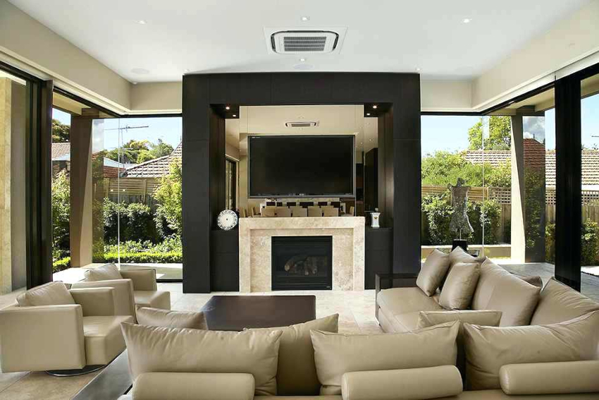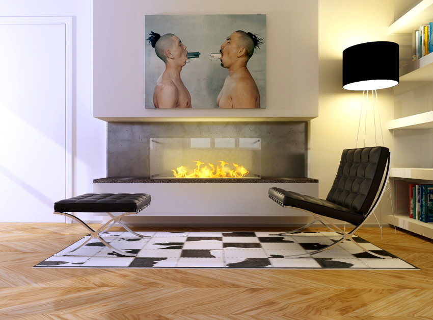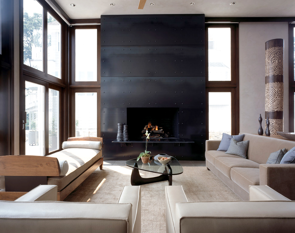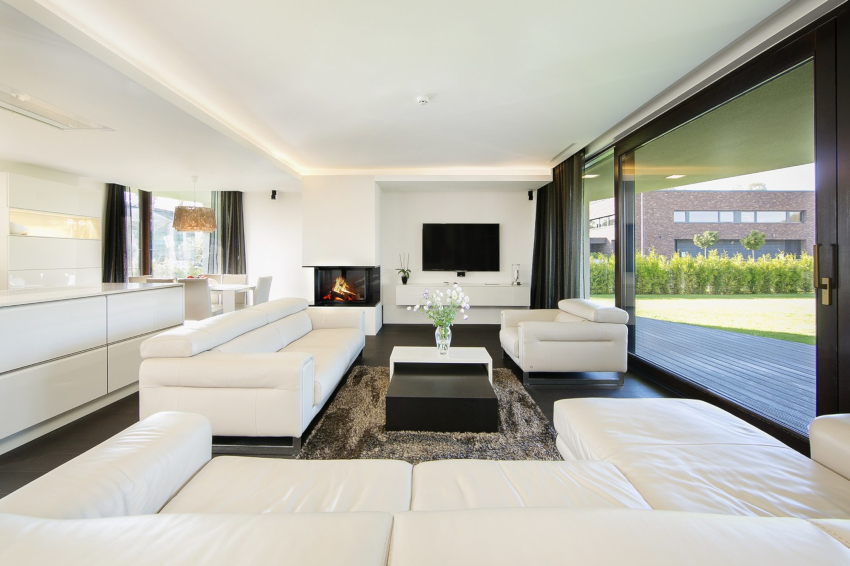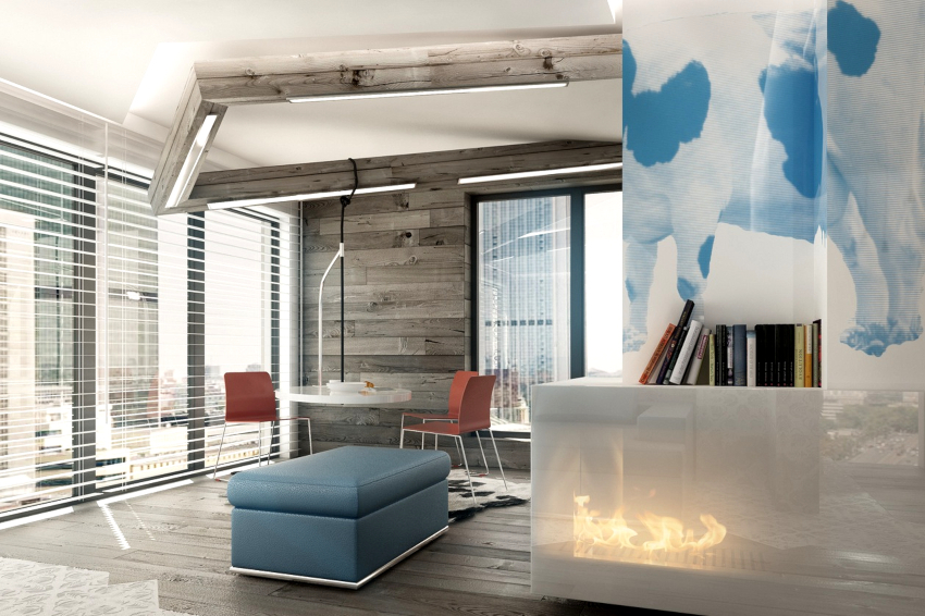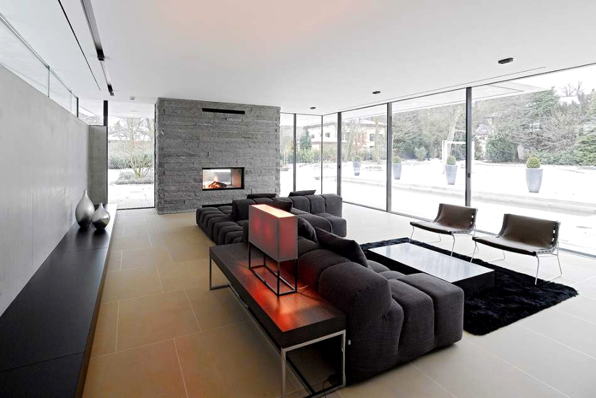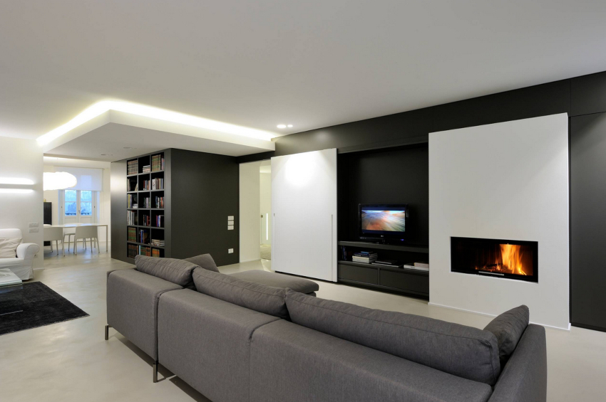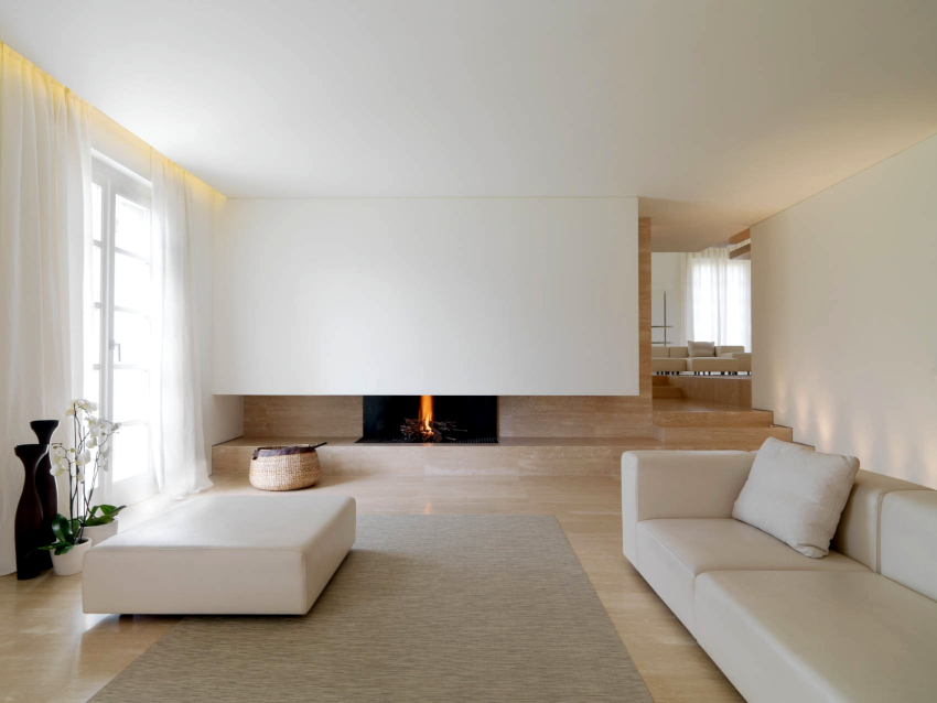 Un pic de căldură poate fi adăugat la interiorul rece, reținut din punct de vedere tehnic, cu ajutorul elementelor decorative sub formă de figuri sculpturale, vaze geometrice și picturi abstracte. Șemineul electric al designului original se va încadra în mod ideal în conceptul general al camerei de zi.