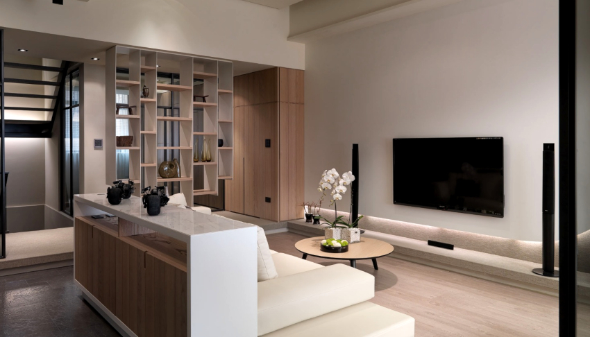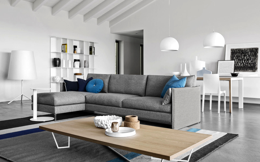 Stilul minimalismului este foarte popular în designul sălii. Livingul este realizat într-o paletă de culori deschise. Premisele sunt caracterizate de mobilier multifuncțional modern, geometrie clară, linii stricte, forme simple, absența decorului fără sens și o abundență de lumină. Livingul minimalist este întruchiparea practicului și confortului.