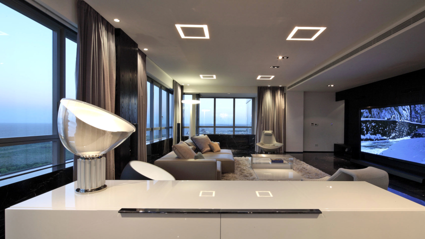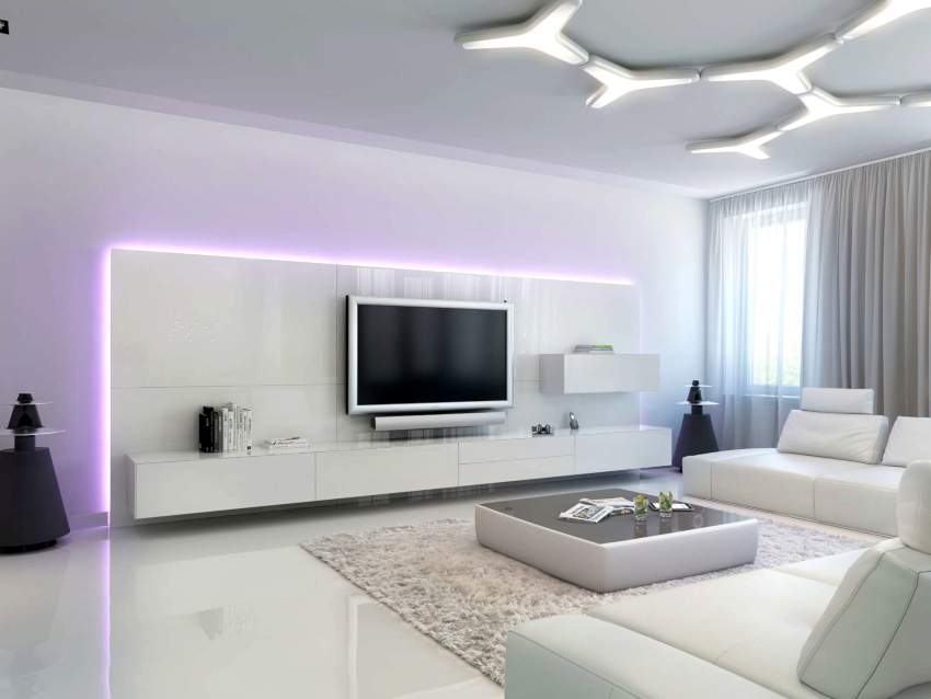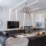- 5 Amenajarea interioară a unei camere de zi într-un stil modern de înaltă tehnologie