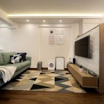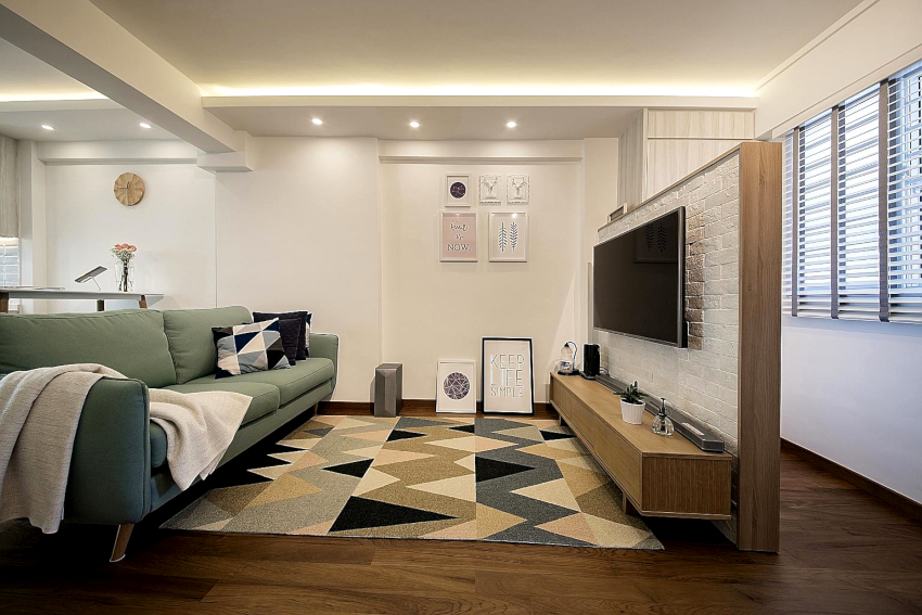 O tehnică populară este tapetarea suprafețelor într-o paletă ușoară pentru a crea un perete de accent, pentru care se utilizează o versiune contrastantă a produsului cu o imprimare vizibilă. Această linie verticală poate fi amplasată în spatele canapelei sau poate ocupa suprafața pe care este atașat televizorul.