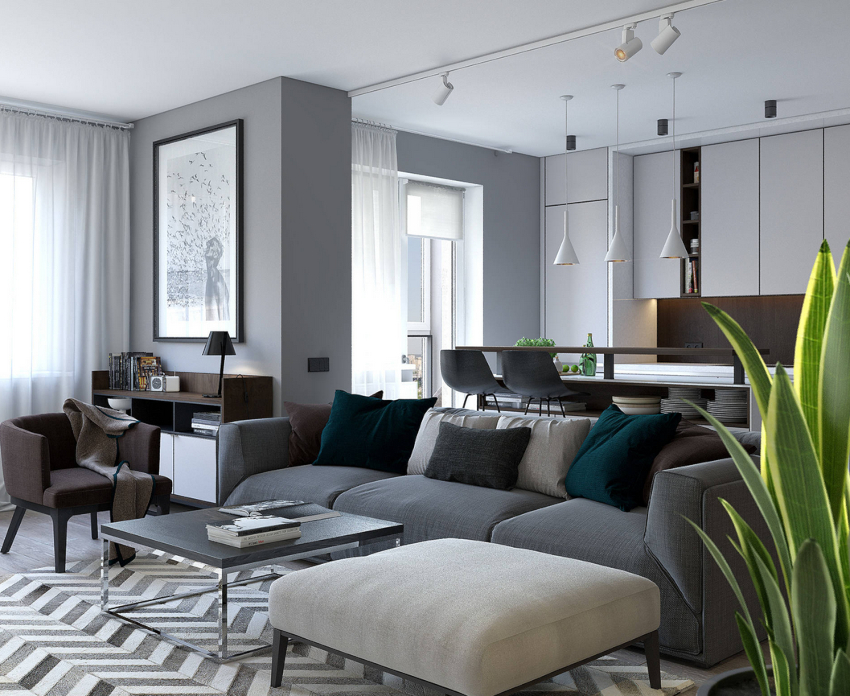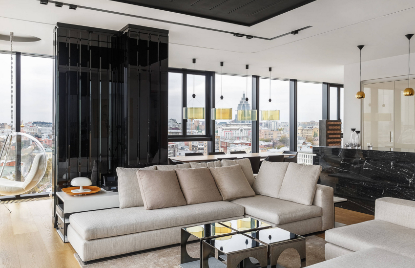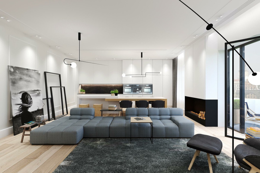 - 4 Design frumos al unei camere de zi într-un apartament în stil modern