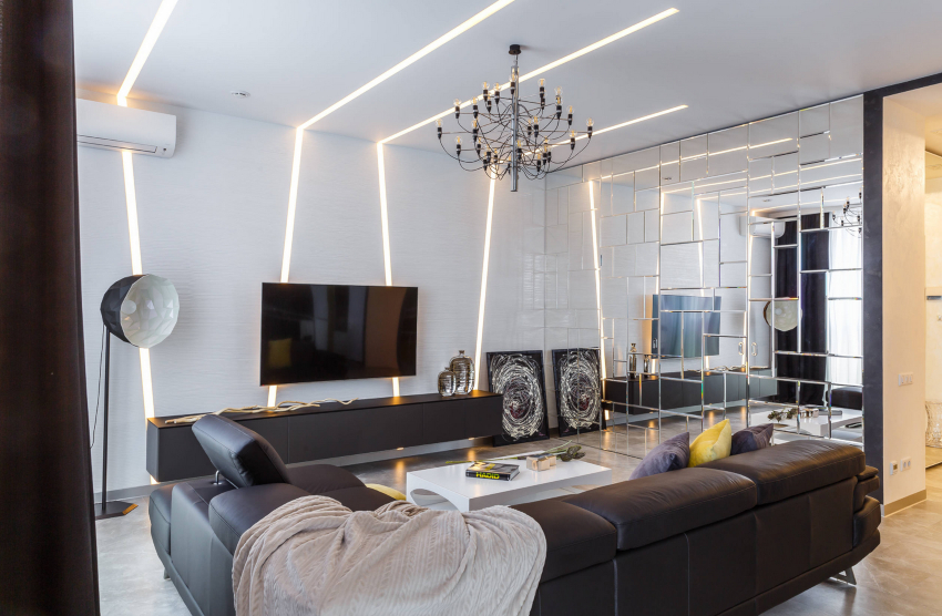 Amenajarea mobilierului poate fi realizată într-un mod neconvențional. Această direcție stilistică presupune o abundență de lumină, care se realizează prin utilizarea unui număr mare de dispozitive de iluminat și iluminare ascunsă în cameră.