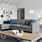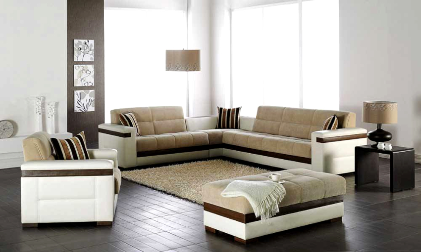 Camera de zi în stil modern ar trebui să aibă mobilier multifuncțional modular, lipsit de colțuri ascuțite. Ca elemente de interior, sunt achiziționate modele cu spate moi și rotunjite, cotiere, selectate cu mai multe tonuri mai deschise decât fundalul camerei.