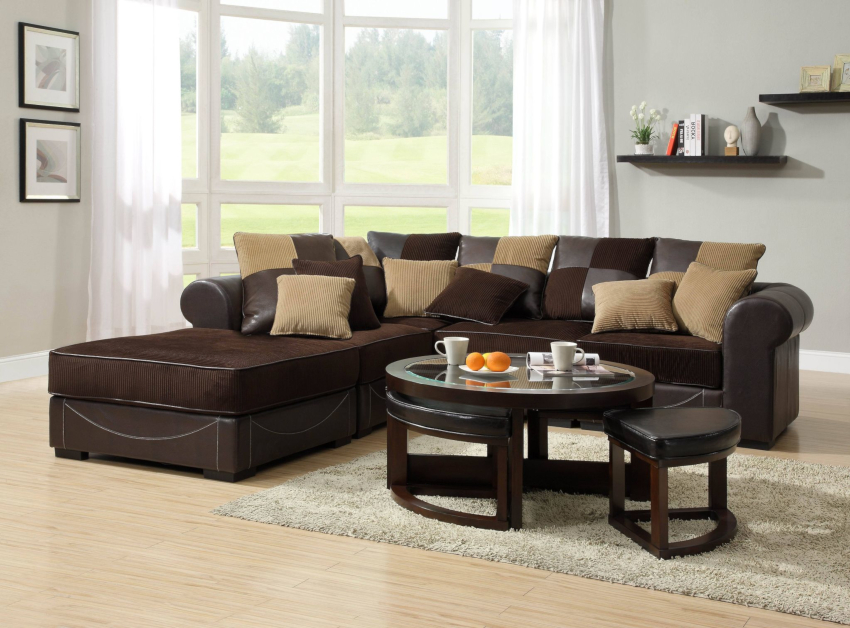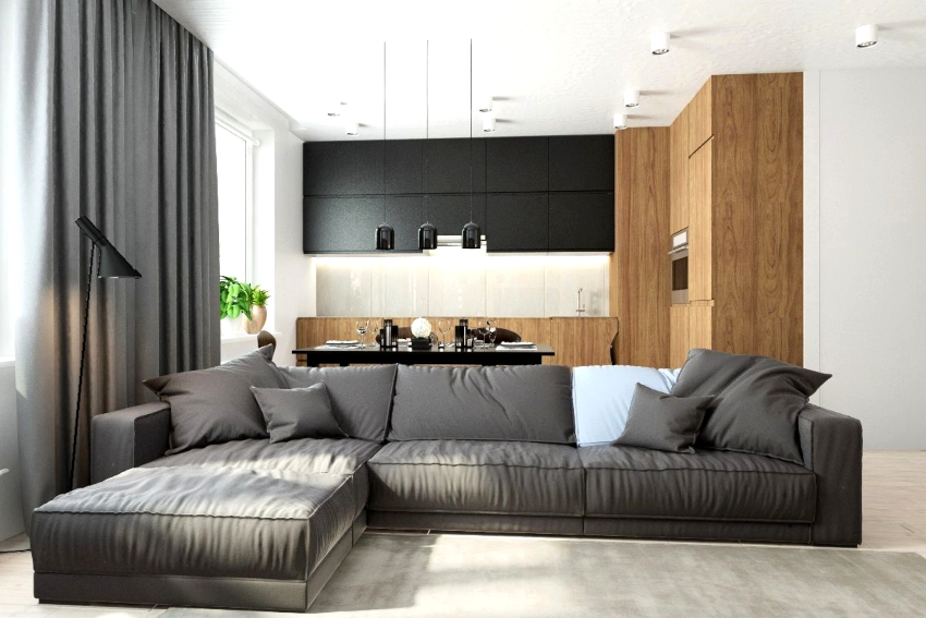 Se selectează mobilier tapițat cu tapițerie din piele simplă sau țesătură sintetică. Opțiuni de transformare sub formă de canapea modulară, dulap-pat, măsuță de cafea, care este transformată într-o masă.