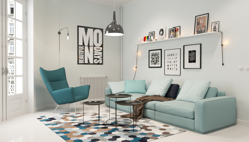 Sfat util! O atingere finală poate fi obținută prin utilizarea unui motiv de repetare accent pe pernele canapelei sau pe marginile înguste ale perimetrului.