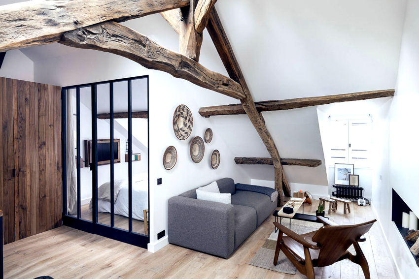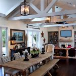 Tavanul trebuie să fie perfect plat, vopsit în alb. Grinzile de lemn într-o culoare naturală dau culoarea caracteristică direcției.