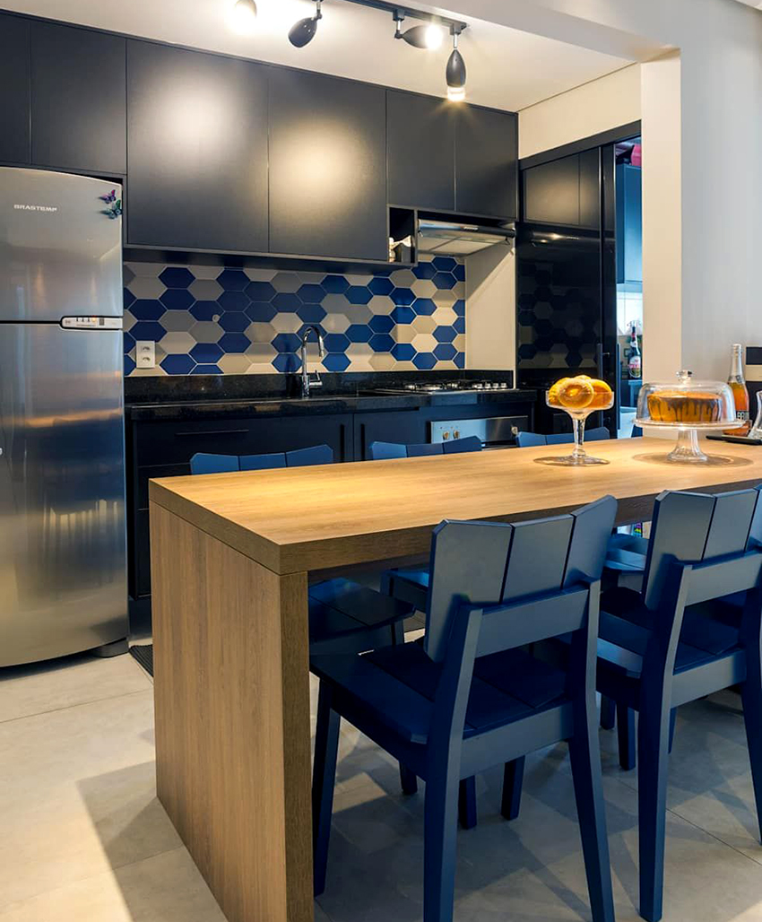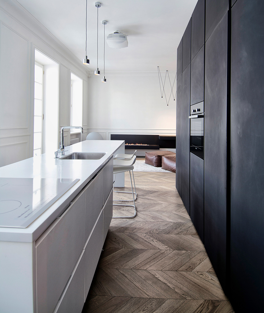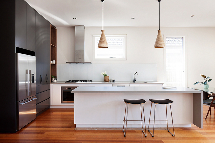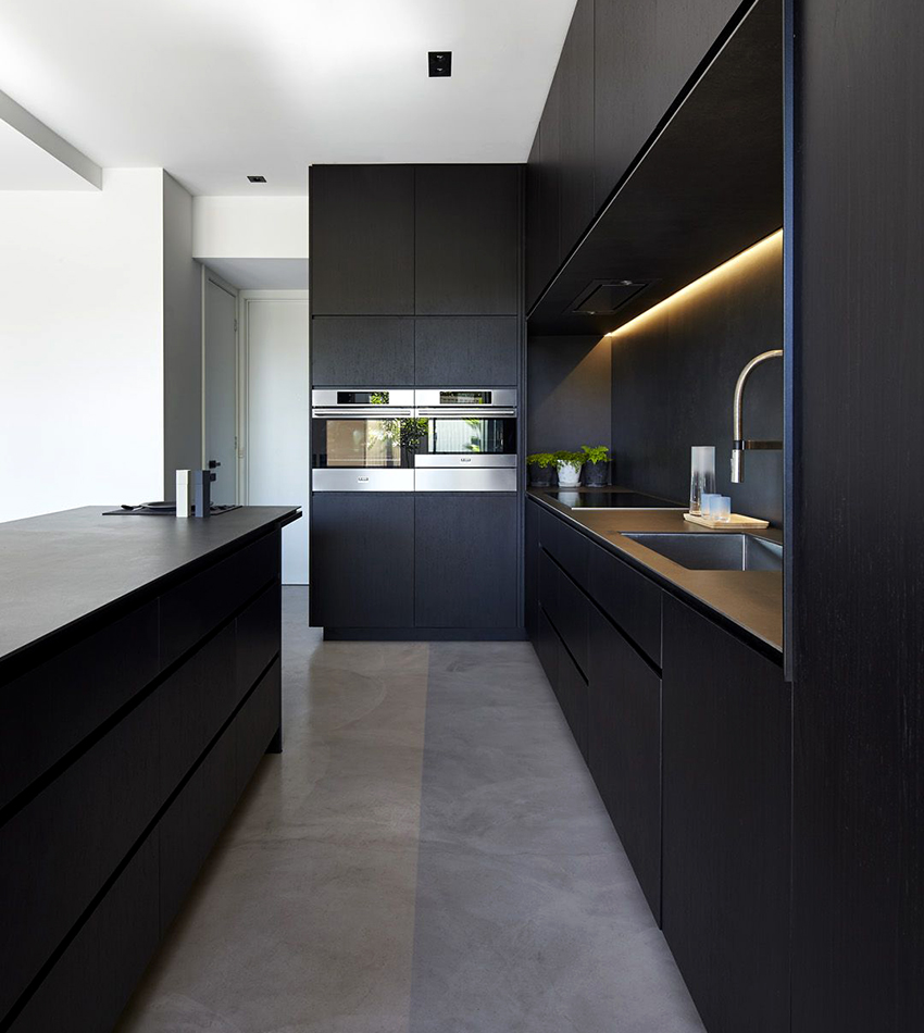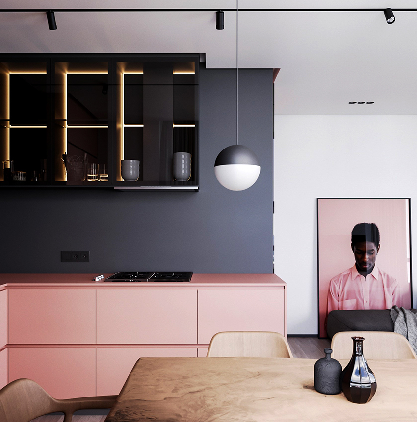 - Predominanța negrului va fi potrivită în culorile fațadelor, în timp ce unele elemente vor rămâne albe: mobilier în zona de luat masa, blaturi și articole de decor.