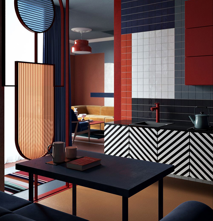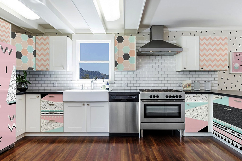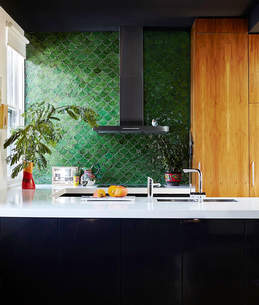 - Mozaicul intercalat cu culoarea fațadelor arată foarte frumos, ceea ce conferă bucătăriei unitate și, în același timp, unicitate.