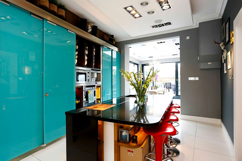 În orice caz, principalul lucru nu este să exagerați, deoarece pe fundalul negru toate culorile vor arăta mult mai strălucitoare și mai bogate. Prin urmare, nu se recomandă supraîncărcarea designului laconic cu accesorii și culori atrăgătoare. Câteva detalii sub formă de fierbător electric luminos, vase sau candelabru vor fi suficiente.
