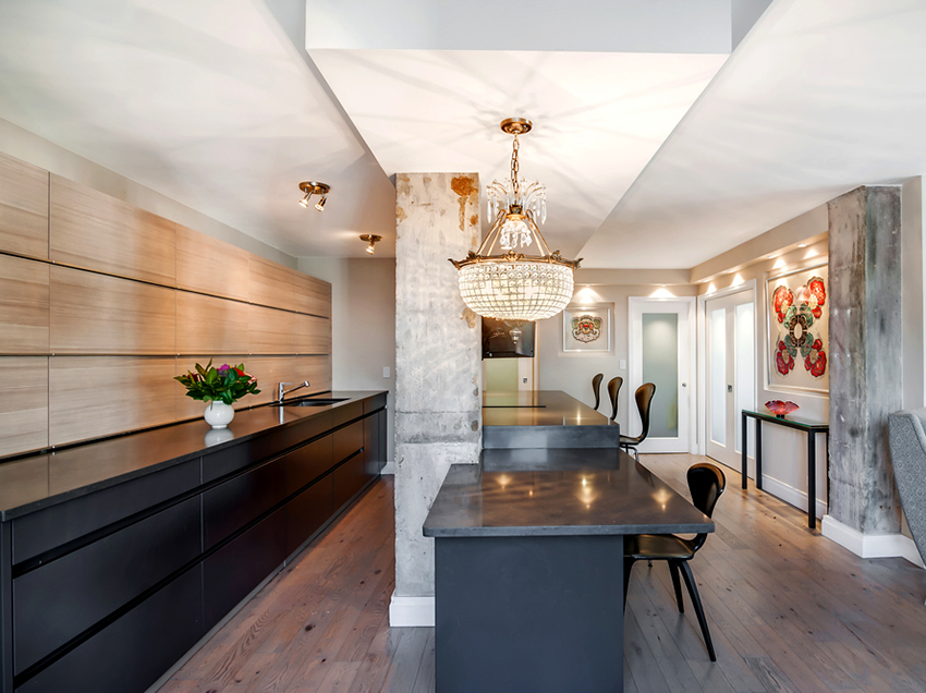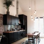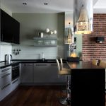 - Lipsa de lumină în bucătăriile negre este o altă caracteristică negativă. Un astfel de minus poate exacerba starea de spirit proastă și poate duce chiar la depresie și la deteriorarea bunăstării.Prin urmare, este necesar ca ferestrele camerei în culori închise să fie orientate spre sud sau cel puțin spre est, iar interiorul să aibă o mulțime de lămpi, candelabre și lumini de fundal.