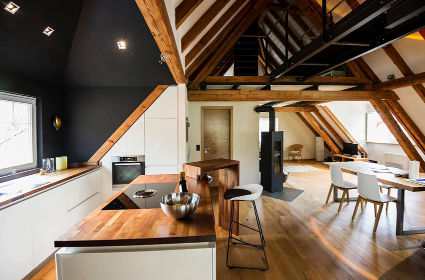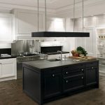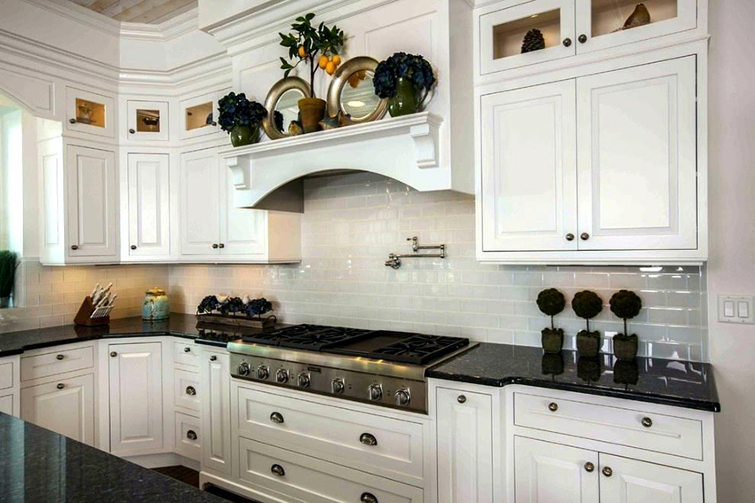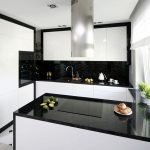 Dacă alegerea se face în favoarea clasicilor, atunci camera ar trebui să aibă mobilier elegant, cu sculpturi și decorațiuni sub formă de mulaje. O podea din piatră neagră naturală sau artificială este ideală. Interiorul de înaltă tehnologie, care este progresiv și funcțional, are linii clare, iar combinația contrastantă de alb și negru subliniază stilul său. Este mai bine să completați blatul negru al unei bucătării albe în acest design cu strălucirea metalului aparatelor de uz casnic.