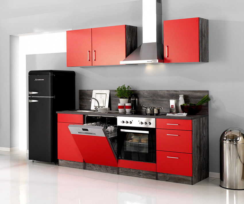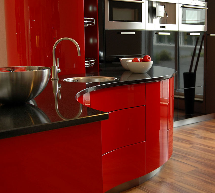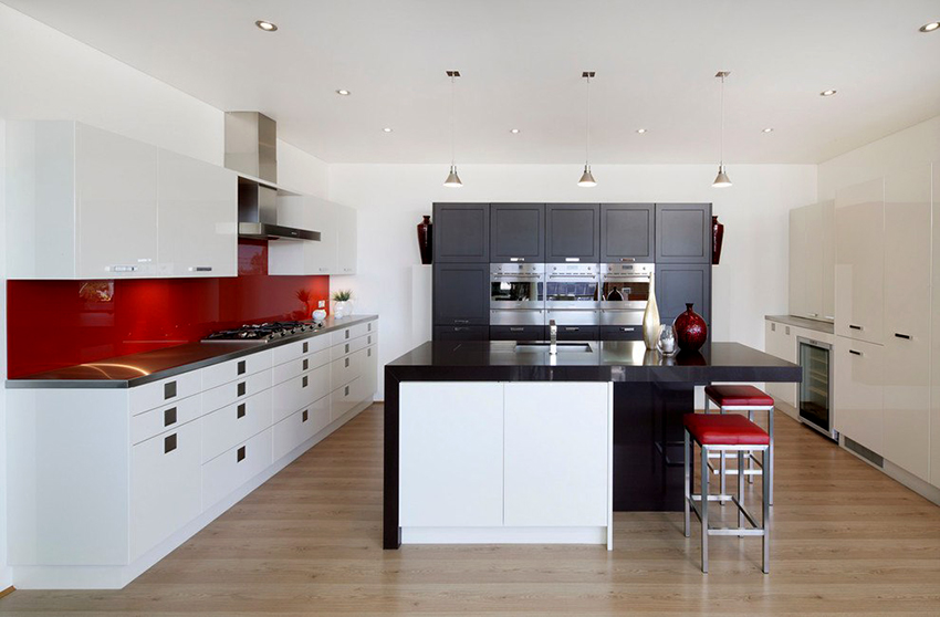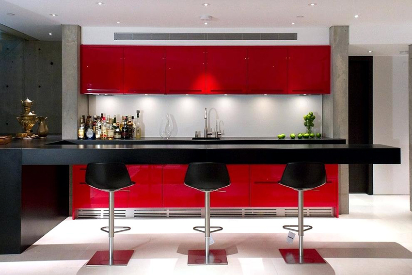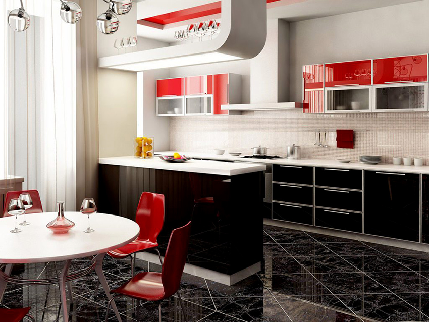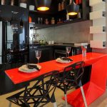 Bucătăria în roșu și negru nu poate fi numită obișnuită. Acest design este alegerea personalităților iubitoare de libertate și extraordinare care țin pasul cu moda. Pentru a crea un design de succes în aceste culori, trebuie mai întâi să alegeți o culoare dominantă. Cel mai adesea este roșu, iar efectul său elegant și dramatic este accentuat efectiv de negru, oferind interiorului o sofisticare și o exclusivitate suplimentare.