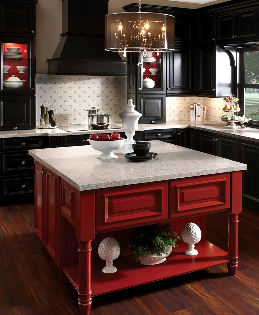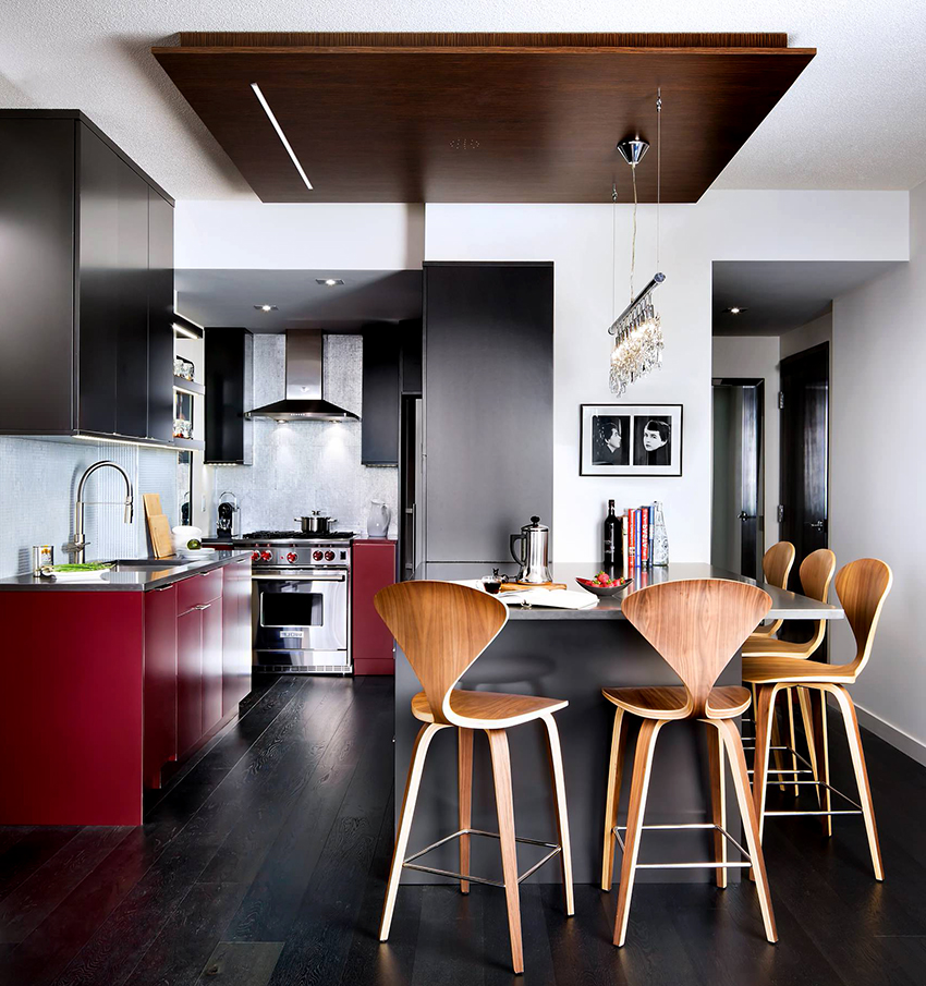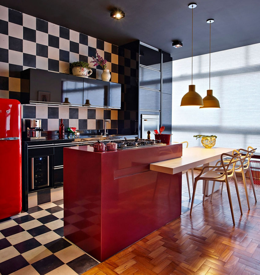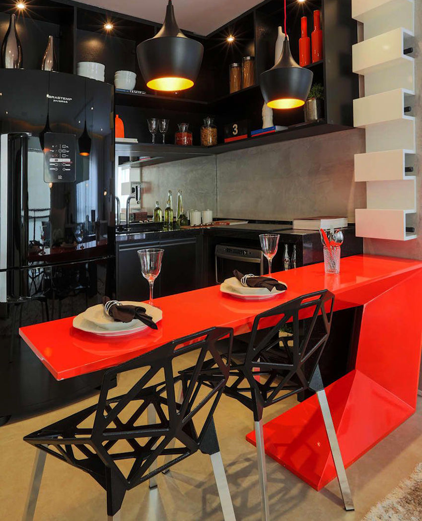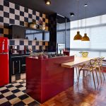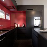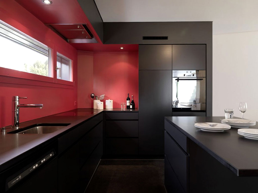 O bucătărie roșie și neagră nu este o opțiune standard care este potrivită pentru personalități luminoase