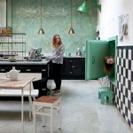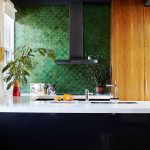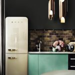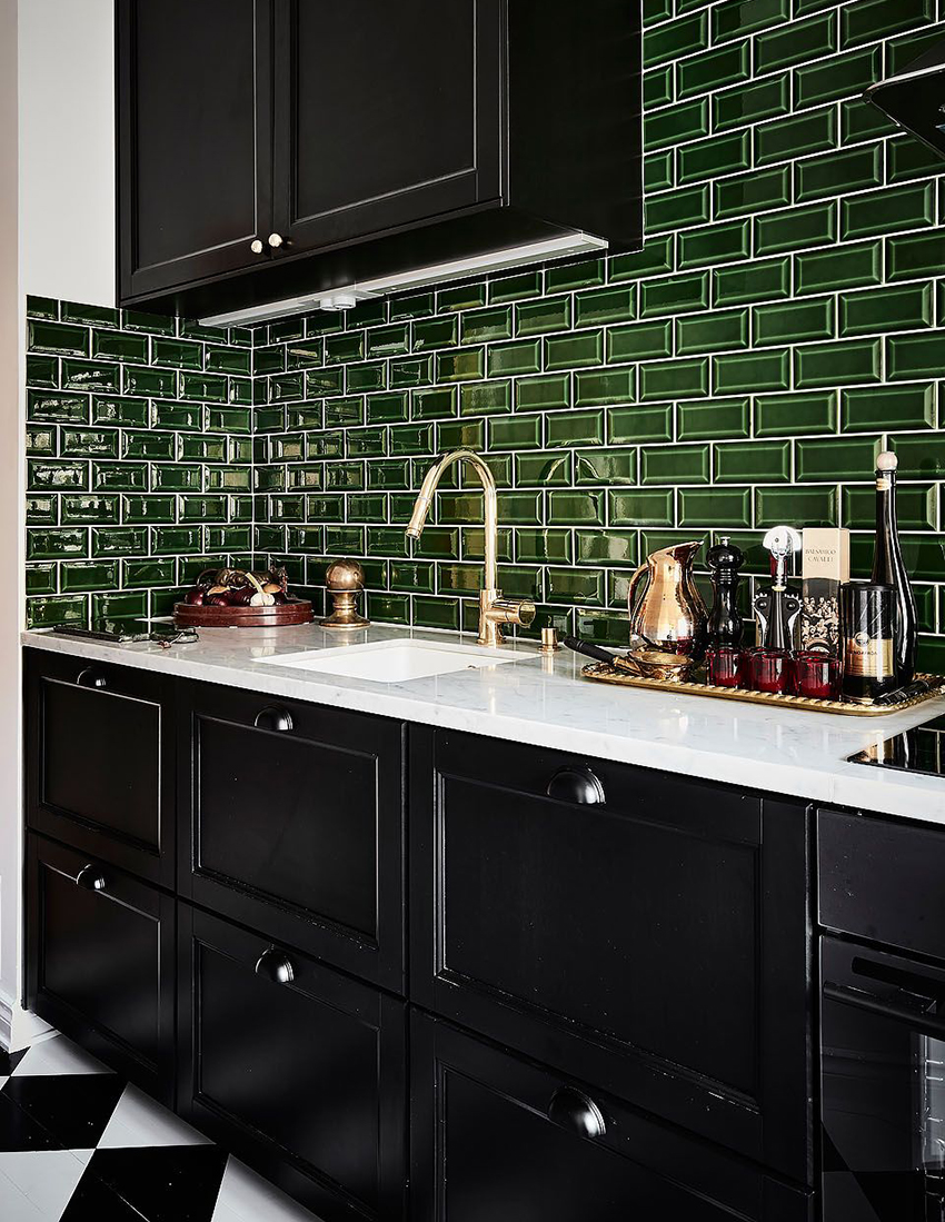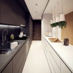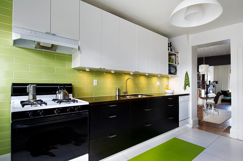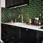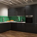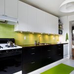 Într-o bucătărie neagră și verde, un tandem de culori calme și extravagante îmbunătățește spațiul vizual, creând profunzime naturală și o atmosferă fantastică. Această combinație arată bine în armonie cu detaliile din oțel și sticla mată. Bucătăriile decorate în culori contrastante, în care negrul este combinat cu o nuanță strălucitoare, sunt ultramoderne, non-standard, minimalismul și confortul domină în designul lor.