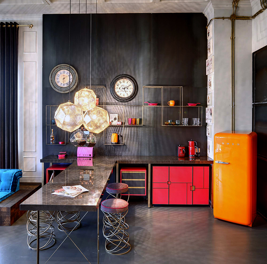 - faceți o sală de mese în această culoare sau aranjați un blat de bar;