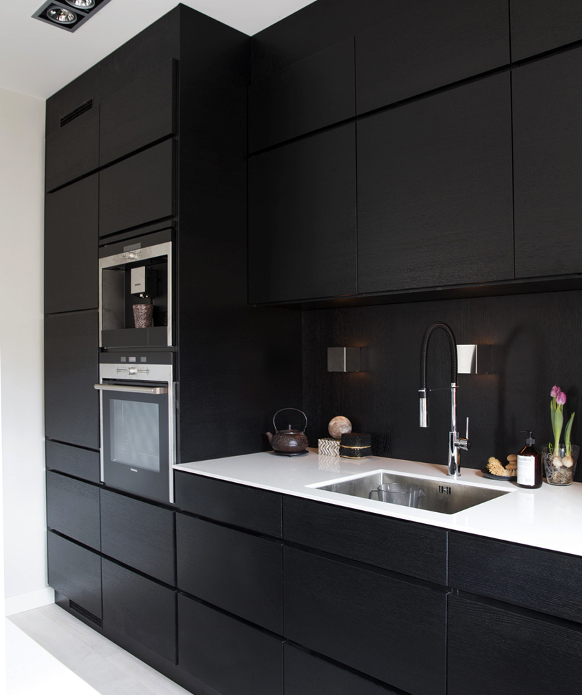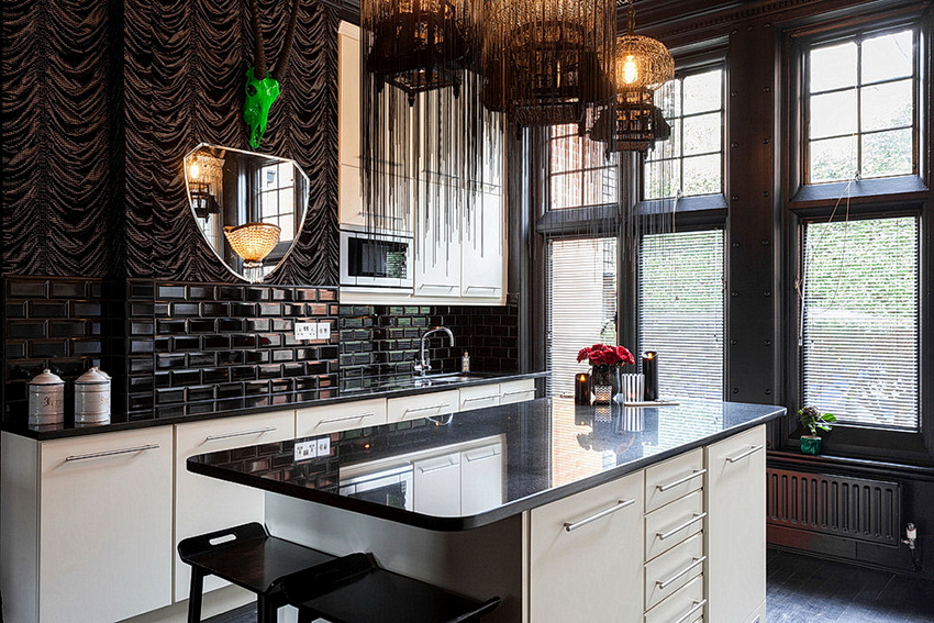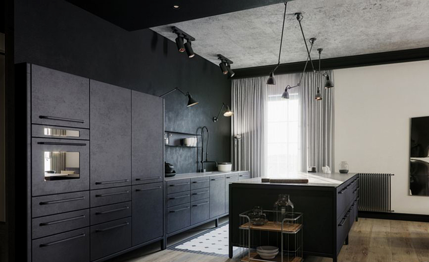 - Interiorul bucătăriilor negre este un contrast de culori, care creează mister și un fel de dramă.