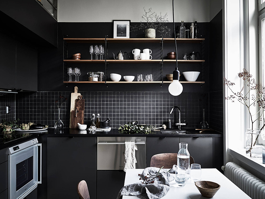 Bucătării negre: reguli pentru alegerea culorilor însoțitoare