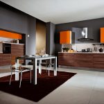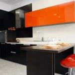 Negrul în bucătărie ca dominantă sau adăugire poate merge bine cu aproape toate culorile. Puteți utiliza în siguranță culori strălucitoare precum verde, portocaliu, galben, roz, liliac. Principalul lucru este să nu exagerați cu luminozitatea și să evitați diversele. Prin urmare, în interior ar trebui să existe maxim trei culori.