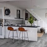 Culorile deschise sunt cele mai folosite în pardoseli. Unirea alb-negru este etalonul de aur al genului clasic de bucătărie, care aduce în interior trăsăturile limită și dinamice caracteristice luptei contrariilor. Această combinație sugerează tot felul de combinații. Un set alb poate fi în armonie cu o podea neagră, un blat de masă și un șorț - și invers. Bucătăriile cu un vârf alb și un fund negru cu podea din tablă de șah par deosebit de solemne.