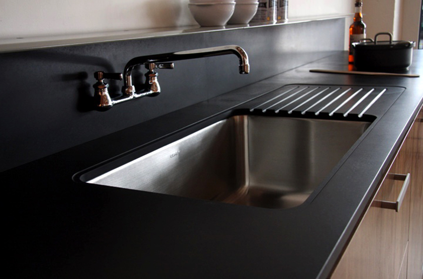 Atunci când alegeți un blat negru, trebuie să țineți cont de faptul că diferiți contaminanți sunt clar vizibili pe acesta, inclusiv particule de praf, pete, urme de picături, firimituri. În acest caz, nu numai culoarea, ci și textura materialului, prezența modelelor și incluziunilor este importantă.