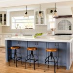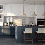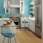 Tonurile de lumină rece cresc vizual înălțimea pereților. Prin urmare, dacă camera nu este înaltă, este recomandabil să faceți bucătăria în albastru, în timp ce se recomandă să lăsați pereții simpli.