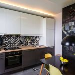Combinația de alb și negru a devenit mult timp tradițională, dar dacă doriți să faceți din negru culoarea principală, atunci designul unei astfel de bucătării devine mult mai complicat. În acest caz, există riscul de a crea un interior prea sumbru și întunecat. Dacă te uiți la fotografiile bucătăriilor, culorile sunt cele mai des folosite într-un raport de 60 până la 40%, iar majoritatea dintre ele au o nuanță albă.
