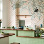 - Prezența unui model vertical crește vizual înălțimea plafoanelor, precum și dimensiunile bucătăriei în ansamblu. Liniile orizontale și dungile reduc vizual înălțimea plafoanelor, dar fac pereții mai largi.